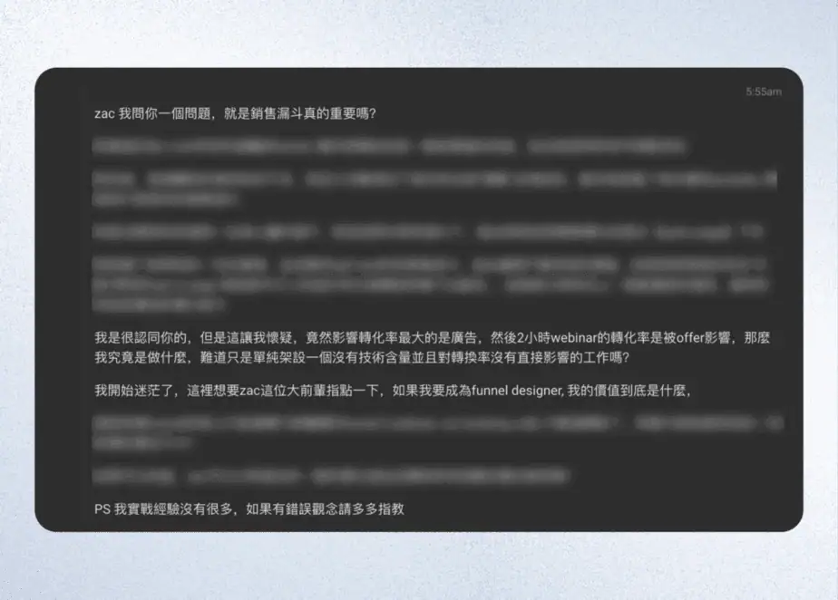 前天早上醒來後,我習慣性去逛了一下課程社群,看看有沒有學員提出問題需要我幫忙解答,然後我注意到了一位學員的私訊…