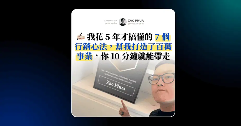 再結合我成功打造百萬一人事業的實戰經驗,我這邊濃縮出了 7 個實用的行銷心法。