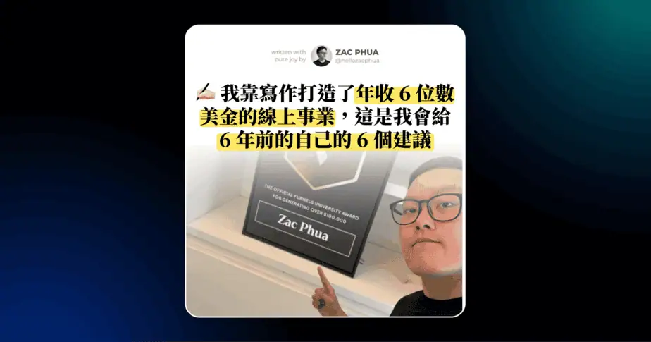 一路跌跌撞撞,從最初的迷惘,到如今能靠「寫作」建立起一個年收 6 位數美金的事業,我才真正明白: